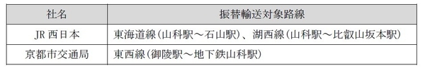 工事実施日に下記の路線にて22時50分から京津線最終列車までの時間帯で振替輸送を実施します。