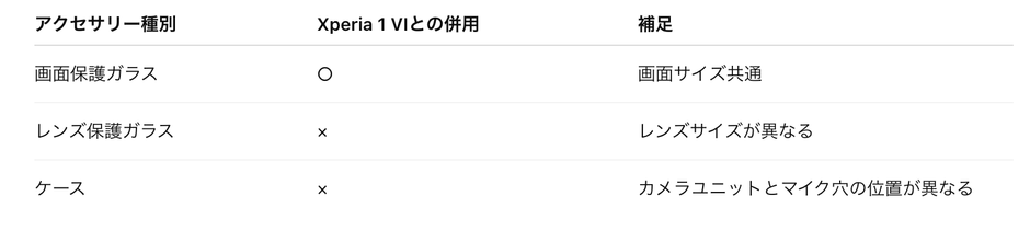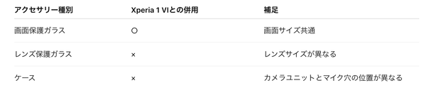 Xperia 1 VIIのアクセサリー併用可能端末一覧