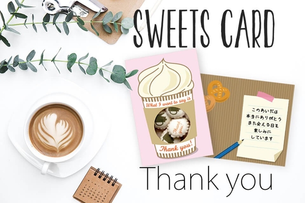 クッキーやラムネに“Thank You”のメッセージを添えて。お菓子とメッセージカードが一緒になった、おいしくて気持ちが伝わるギフトです。