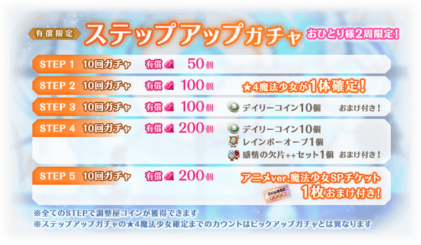 ※STEP2での★4魔法少女について、ピックアップ対象の魔法少女が確定するわけではございません。