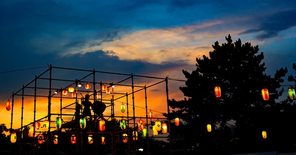 にぎやかなのぼり旗が立ちならび、無数のちょうちんがぶら下がり、ぴーひゃららと祭囃子が聞こえてきます。