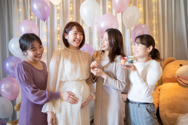 アメリカ発祥の安産祈願パーティー、これからママになる女性と産まれてくる赤ちゃんを「シャワーから降り注ぐような愛情でお祝いする」という意味を持つ。