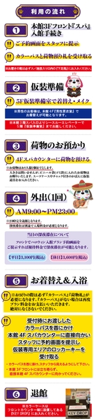 仮装のお着替え・お荷物お預かり(おひとり様2個まで)・お戻り入館(1回限り・入浴可)が全て入って大変お得です!