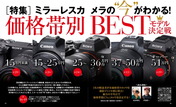 巻頭特集【ミラーレスカメラの‟今”がわかる! 価格帯別 BESTモデル決定戦】