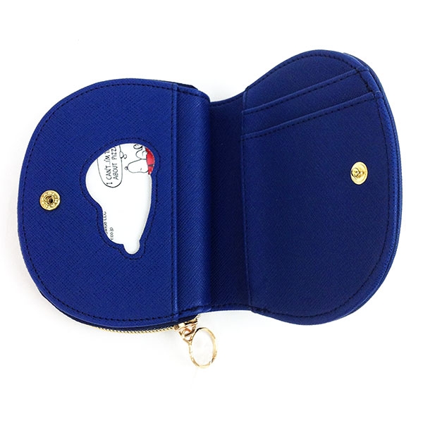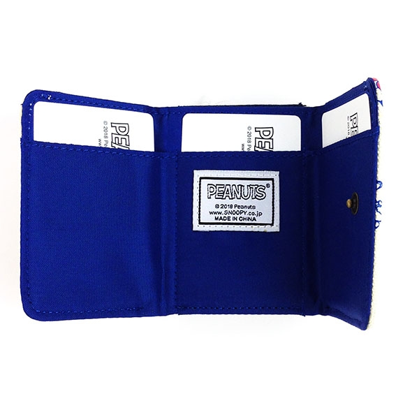 お札を入れる面は深いブルーです。PEANUTSのロゴタグがアクセントになっています。