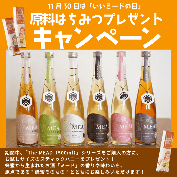 期間中は、人気の『The MEAD(ザ・ミード)』シリーズを対象にしたプレゼント企画や、SNSを通じたフォロー&リポストキャンペーンを開催。また、「いいミードの日(11/30)」には新春ギフトにもおすすめの、新作「The MEAD さくら(ザ・ミード サクラ)」が入った華やかなギフトセット「京都蜂蜜酒醸造所 The MEAD 紅白ギフトセット(The MEAD & The MEAD さくら)」を発売します。