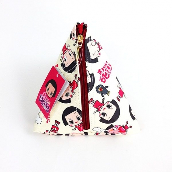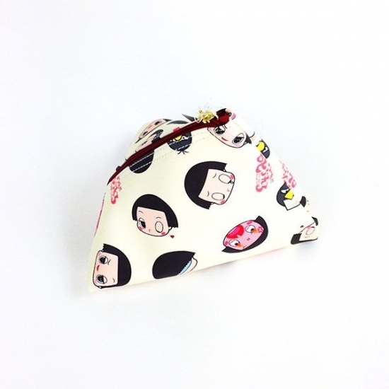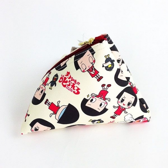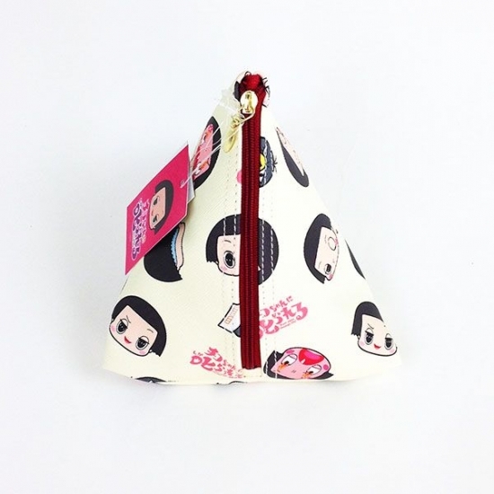 ユニークな三角形のポーチは表情豊かなチコちゃんがいっぱい!レトロな風貌で、おしゃれに仕上がってます♡