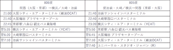 <東京(池袋・大崎)・神奈川(横浜)と関西(大阪・京都)を結ぶ 高速乗合バス「サン・アンド・ムーン」805便、806便 概要>
