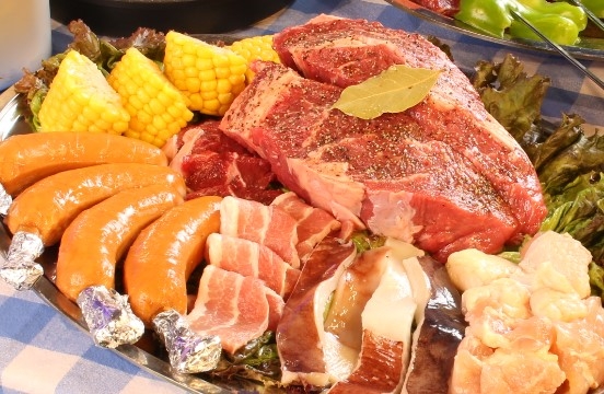 リブロースや骨付きソーセージなどじっくりと焼き上げたお肉はジューシーで噛むほどに旨味を堪能できます。お好みの調味料で自分だけの食べ方を見つけてみて下さい。