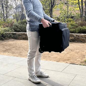 これらの課題を解決する為に、オン・ボードが考案し2017年より発売しているのが、ワインボトルや四合瓶を12本入れても、女性でも軽々と運べるキャリーバッグBottle Flyerです。使わない時は、コンパクトにたため、大型のスーツケースに入れられる他、ボトル類を入れた状態で飛行機の受託手荷物としても預けられることで、国内外でのワイナリーめぐりや、国内での酒蔵めぐり、また酒類の販売店などに広くご愛用いただいています。