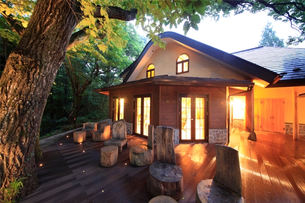 約1万坪の自然林にたたずみ、森に点在するように18室の離れや施設が点在します。