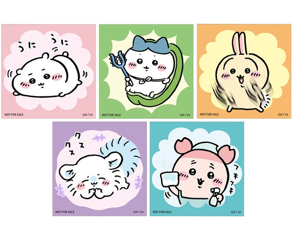 ①『ちいかわらんど TOKYO Station』で商品お買い上げのお客様には、「ステッカー(全5種)(非売品)」を1会計につき、1枚ランダムでプレゼント!!