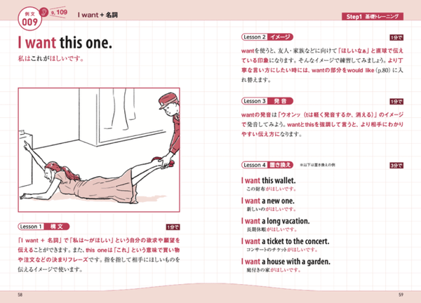 この筋トレの2つの要素に加え、著者が学んできたアドラー心理学やNLP(神経言語プログラミング)の知識をもとに、「英会話力を最短でアップ」という目的に基づき、理にかなった英文やトレーニング方法を用意しました。