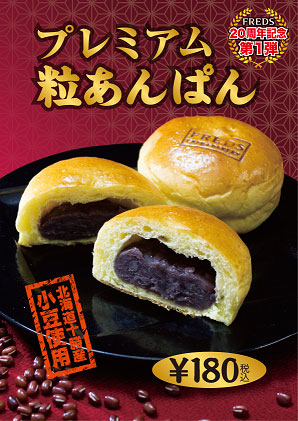 開業20周年記念商品 第一弾!もうひと口食べたくなる「プレミアム粒あんぱん」 2015年4月1日(水)よりベーカリーカフェ FREDS CAFE 10店舗にて