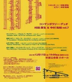 コンテンポラリーデュオ主催による『コンテンポラリー・デュオ 村田厚生&中村和枝 vol.7』が2021年12月17日 (金)に杉並公会堂小ホール(東京都杉並区)にて開催されます。チケットはカンフェティ(運営:ロングランプランニング株式会社、東京都新宿区、代表取締役:榑松 大剛)にて発売中です。