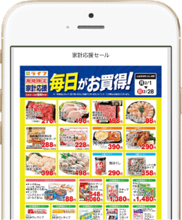よく行くライフの店舗をマイ店舗に登録すると、そのお店のチラシを簡単に見ることができます。マイ店舗は3店舗まで登録可能。