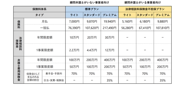 付帯サービス:弁護士直通ダイヤル、税務相談サービス、労務相談サービス