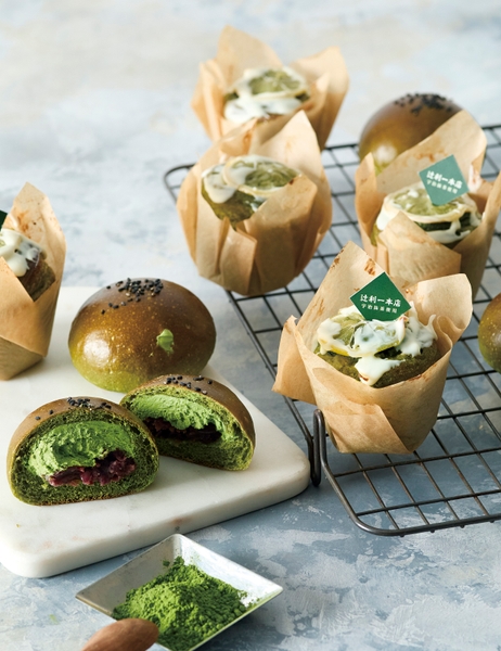 ベイカリー併設の16店舗限定で、宇治抹茶を使用した新作パン2種を発売