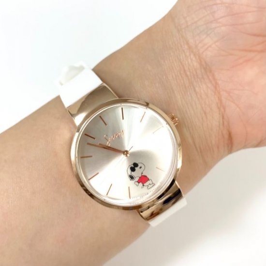 こちらはブラックのダイヤルとホワイトのベルトの配色がセンス抜群。とぼけたような表情のスヌーピーもユニークでかわいいです。