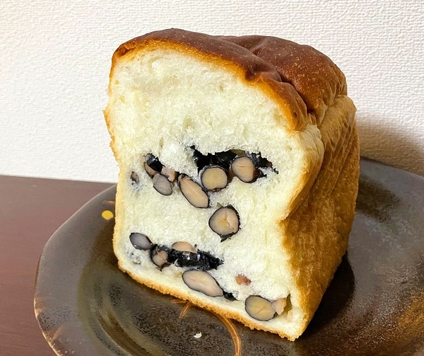 山の芋を使用したふわっふわの食パンに、たっぷり入った黒豆がよいアクセントとなっています。