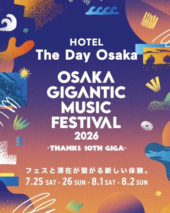 大阪・舞洲のベイエリアにあるガーデンリゾートホテルThe Day Osaka(大阪市此花区)では、舞洲で7月に開催される大型音楽フェス「OSAKA GIGANTIC MUSIC FESTIVAL 2026(通称:ジャイガ)」にあわせ、ライブの前後も含めて楽しめる新たな過ごし方をご提案します。
