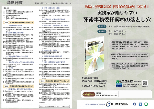 誤解・誤認による「思わぬ不具合」を防ぐ!「実務家が陥りやすい 死後事務委任契約の落とし穴」好評につき少部数ながら再入荷いたしました!