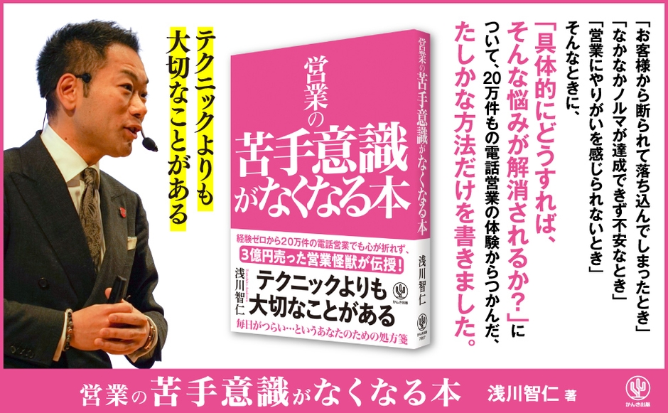 本書の著者・浅川智仁氏はまさにそんな実績を作り上げた営業マンですが、最初は「営業の電話をかけることが本当に恐怖でした」と語ります。