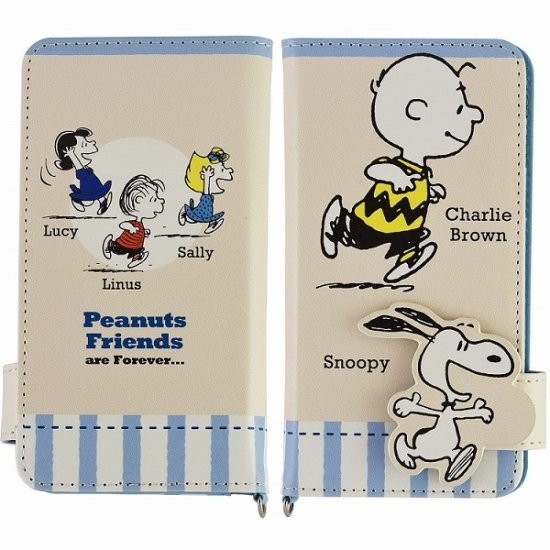 2つ目は、こちらの手帳型スマホカバーです。チャーリーブラウンやスヌーピーたちが楽しそうに走っている様子がプリントされていますね!とっても可愛いです。ちなみに、全機種対応型カバーですよ♪サイズは高さ150mm×幅75mm×厚み10mmです。