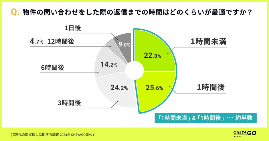 ・物件の問い合わせから返信までの時間、約半数が1時間後までが最適と回答