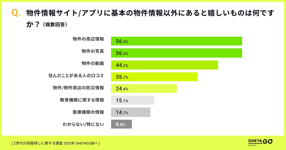 ・物件情報サイト/アプリ、基本物件情報以外であると嬉しいのは「周辺情報」「物件写真」