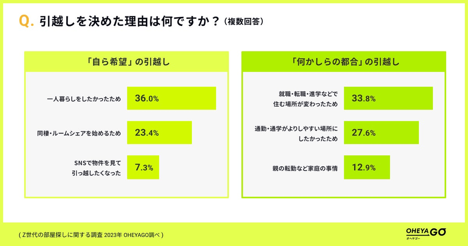 ◆ Z世代が引越しを決めた理由、「一人暮らしをしたかったから」が最多