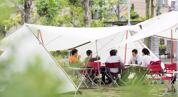「CAMPING OFFICE」とは、自然を感じながら、人と人が心を通わせ、人間らしくワクワク働ける仕事環境のことです。