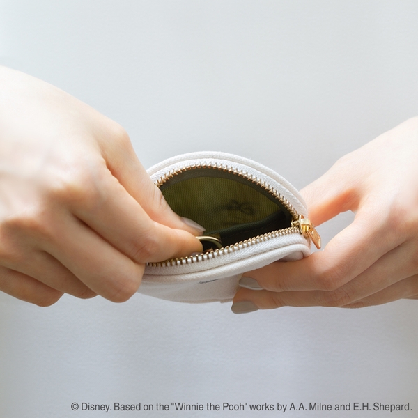 「プーさん」の何とも言えない表情が愛らしいナチュラルな風合いのミニポーチ。いつも持ち歩きたい大切なものを入れて、お出かけのおともに。