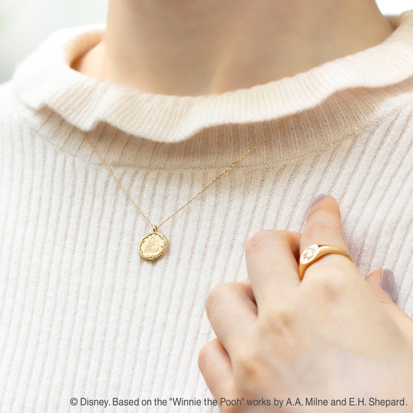 「クラシック・プー」の素朴な挿絵のタッチをそのまま感じられるコインネックレス。やさしくあたたかな物語をいつでもそばに。