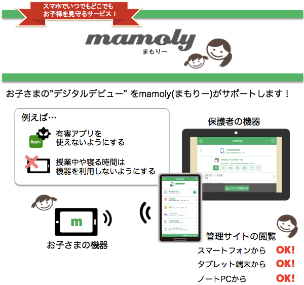 お子さまの安心スマホ・タブレットデジタルライフをサポートする、 ペアレンタルコントロールサービス「mamoly(まもりー)」を発表