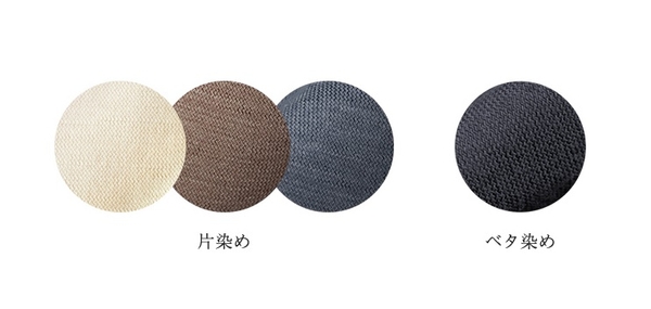 複合繊維のうち一方を染色、一方を晒し糸のまま残す染色方法を「片染め」といいます。