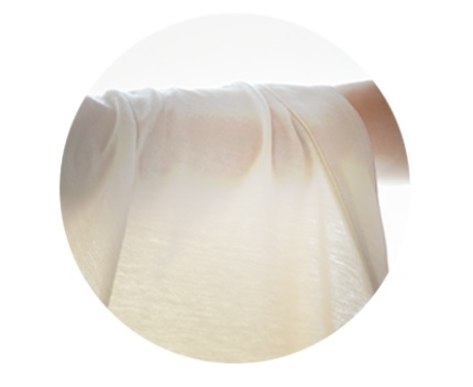 特殊な二層構造糸で編み上げたニット天竺は、芯部にポリエステル糸、表面は綿糸で、お肌に触れる部分はコットン100%です。