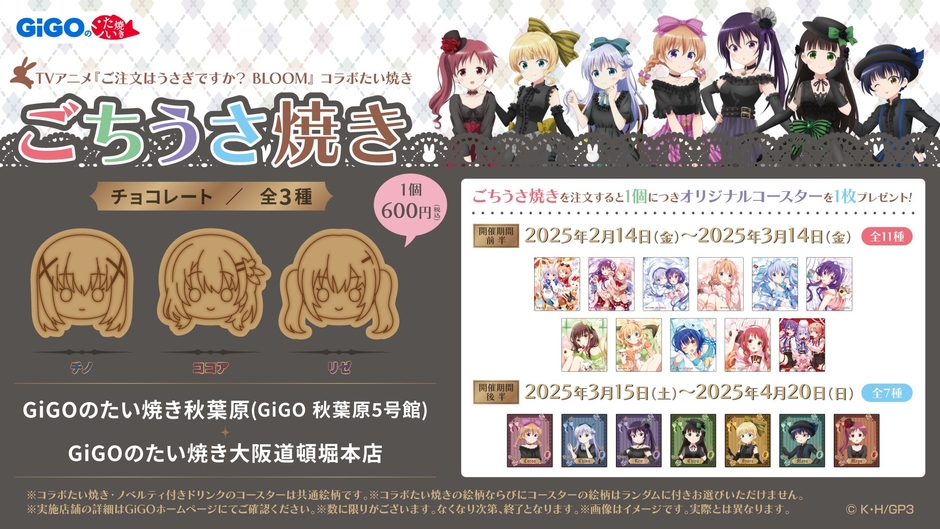 なんともかわいいコラボたい焼きが登場!! 『ご注文はうさぎですか? BLOOM』 × GiGOコラボ開催のお知らせ