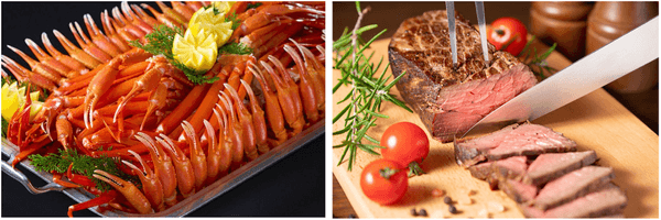 ※かに食べ放題は紅ずわい蟹またはトゲずわい蟹の脚と爪のみの提供です。