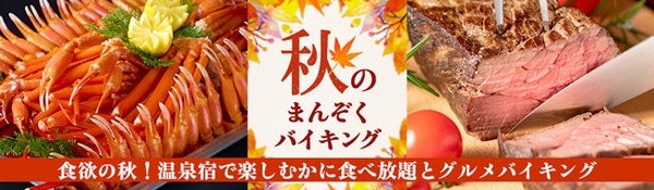 遅めの夏休みにお薦め。大江戸温泉物語、石川・福井県の3つの温泉宿で9月1日、かにとローストビーフが食べ放題の秋のまんぞくバイキングがスタート。