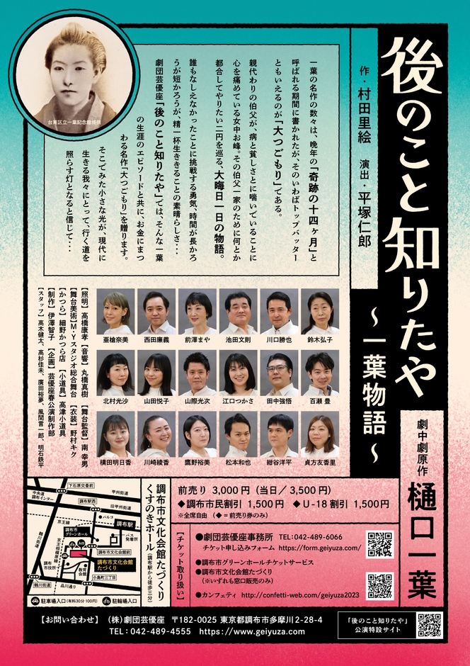 劇団芸優座『後のこと知りたや~一葉物語~』が2023年4月22日 (土) ~2023年4月23日 (日)に調布市文化会館たづくり くすのきホール(東京都調布市小島町2-33-1)にて上演されます。
