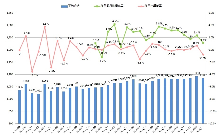 2月度製造業平均時給は1,085円 前年同月比が16カ月連続プラス 日本最大級の製造業求人情報サイト『工場ワークス』 ~ 2015年2月度 製造業平均賃金調査 ~