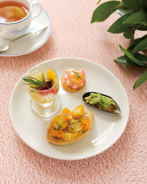 セイボリーは、アペロをイメージした、地中海の前菜。 お口休めにぴったりな塩味ですが、キリリと冷えた辛口白ワインとも好相性です。