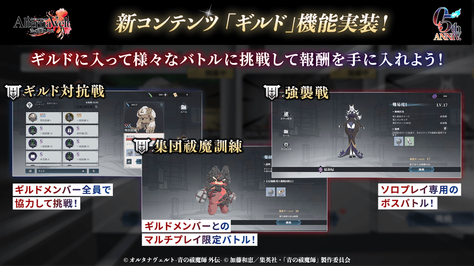 ギルドに加入すると対抗戦や集団祓魔訓練など特別なクエストやミッションを受ける事が