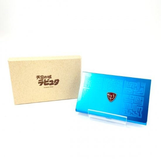 鮮やかなターコイズブルーの名刺入れは、天空の城ラピュタのデザインです。