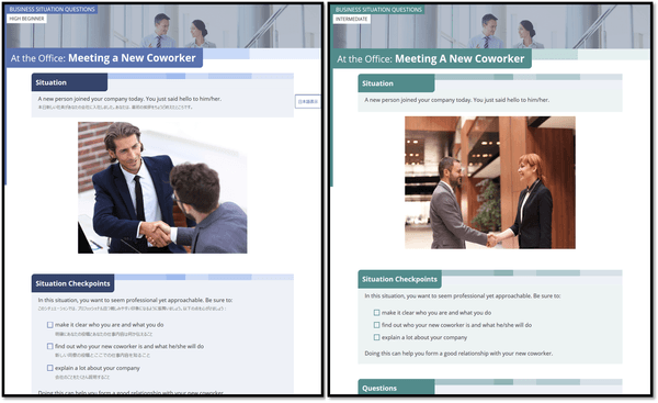 ・Business Discussion(ビジネスディスカッション)、Business Situation Questions(ビジネスシチュエーションクエスチョン)