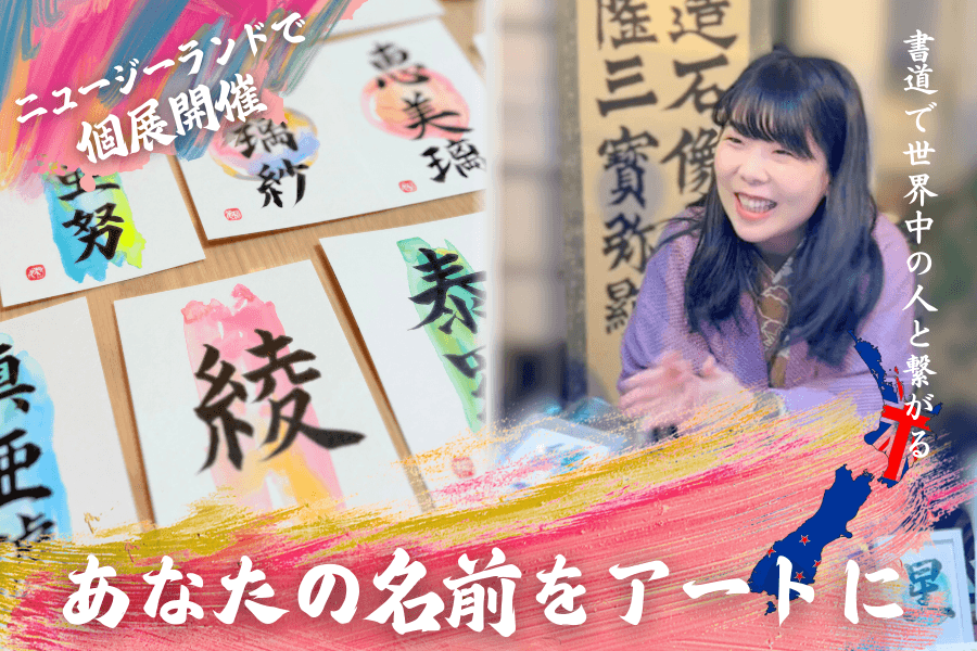 今回の挑戦では、2026年2月〜3月の約1か月間、ニュージーランドに滞在し、「KANJI Name Art™」を始めとする作品の初個展開催、ニュージーランド最大級の日本文化イベント「Japan Day」への出店、ローカルマーケットへの継続出店を予定しています。