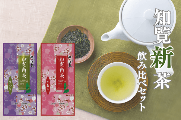 南九州市産茶葉を使用して濃厚な色と旨味を引き出した「知覧茶新茶かおり」のセットです。