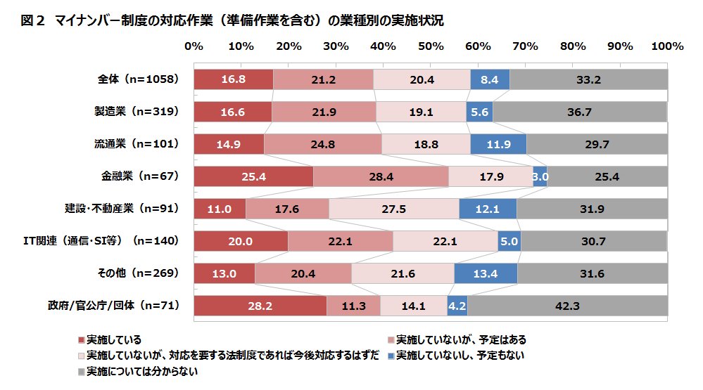 図2 マイナンバー制度への対応作業(準備作業を含む)の業種別の実施状況