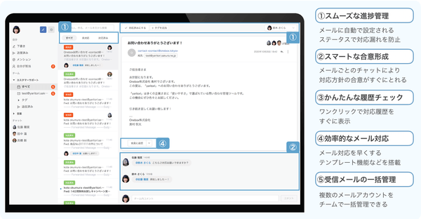 yaritoriは、複数人でのメール対応・管理を効率化するクラウド型のメール共有システムです。
